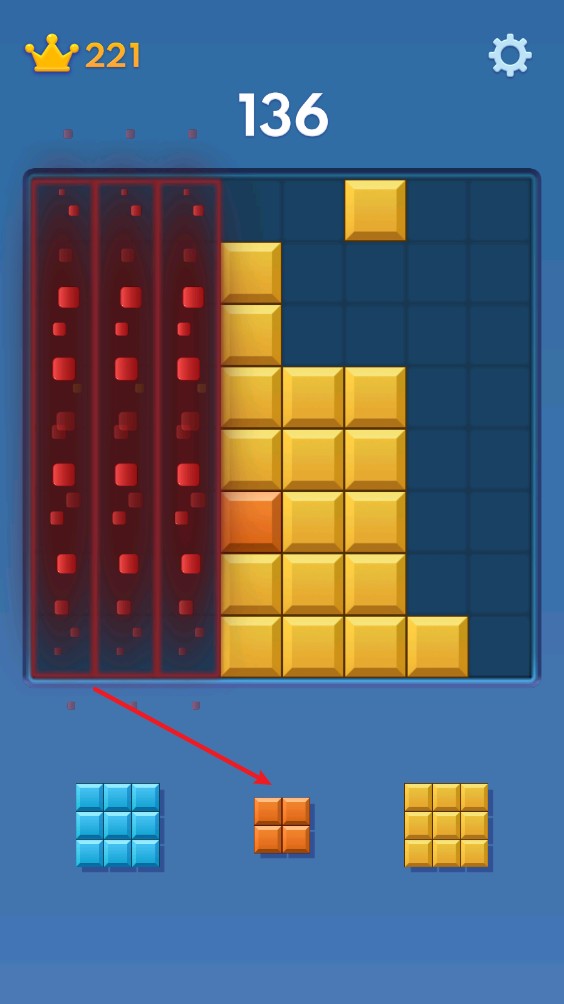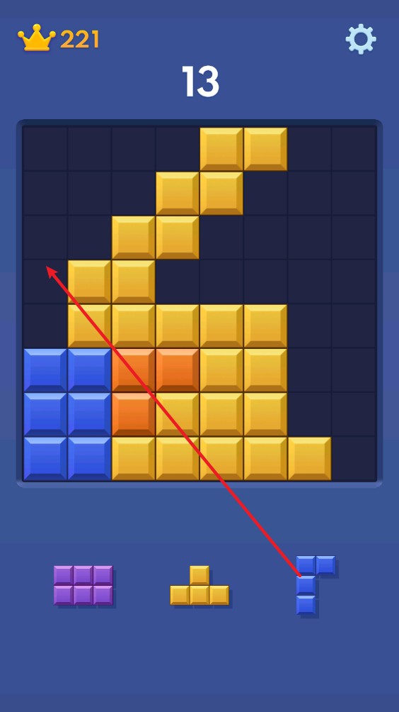 1、在游戏下方会出现三种随机方块,只需把它们放置到合适的位置就行。