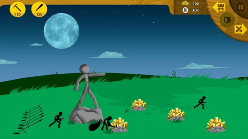 战争题材,生动展现: 通过训练弓箭手、法师、巨人等不同兵种,摧毁敌方雕像,玩家将在火柴人战争中体验一场场激动人心的战争。