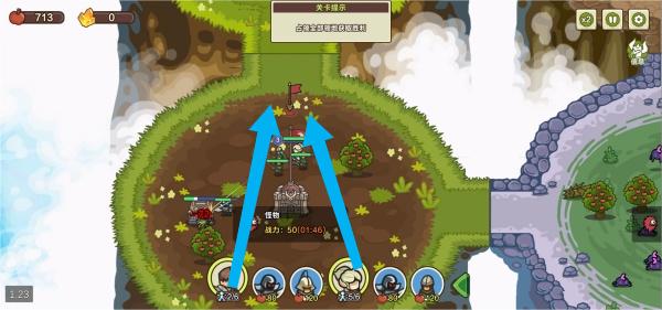 不同关卡地形影响战斗策略:①狭长通道地形:敌方易在通道口部署箭塔,此时多招募法师,利用范围伤害摧毁箭塔,步兵跟进推进,骑兵绕路从通道侧后方突袭;②多岛屿地形(有桥梁连接):优先占领桥梁两端的领地,在桥上建造箭塔封锁通道,再逐步蚕食各岛屿敌方领地;③资源分散地形:敌方资源站分布较散,派遣骑兵分头突袭,摧毁其资源站后,敌方因缺乏金币无法招募士兵,再逐步占领剩余领地。