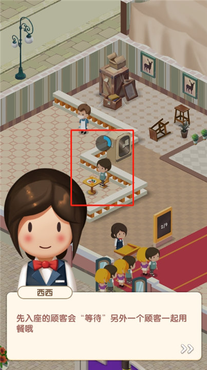 4、先就座的顾客需要等待另一位顾客前来。不过要留意,一旦蓝条结束,配对就会失败。