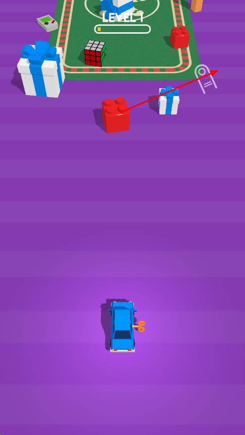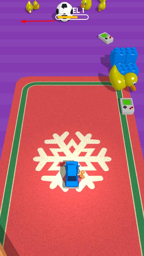 2、于关卡内滑动玩具角色以躲避障碍物,沿途收集道具,并借助场景中的机关助力前行,一步步朝着关卡终点迈进。