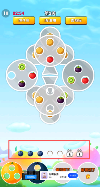 3、要是下方不存在对应颜色的箱子,你所点击的水果会先暂时放置在此处。