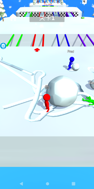 3.收集更多的雪球填满道路朝着终点冲刺!