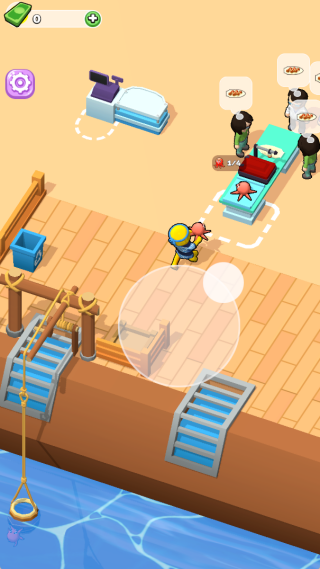 1. 初始时玩家便拥有简易海滨餐位,后续能够逐步解锁并布置特色设施。搭建这些设施需要消耗经营资金,而设施完成后,可提高餐厅的美观程度。