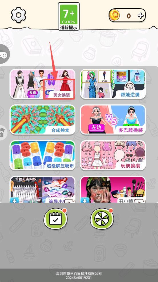 1、选择游戏在游戏列表中点击“美女换装”进入游戏。