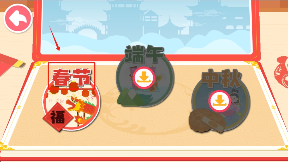 1、选择一个节日,如春节、端午或中秋,点击相应的节日图标进入游戏。