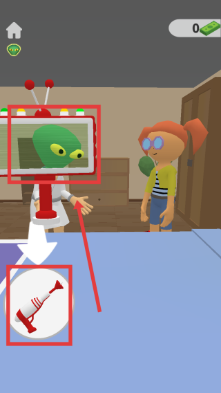 2、发现外星人后,点击武器并瞄准射击,即可消灭对方。