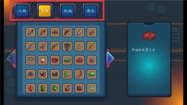 2、在图鉴界面,点击【人物】、【宝物】、【祝福】可查看对应所有物品,点击【商店】可以购物。