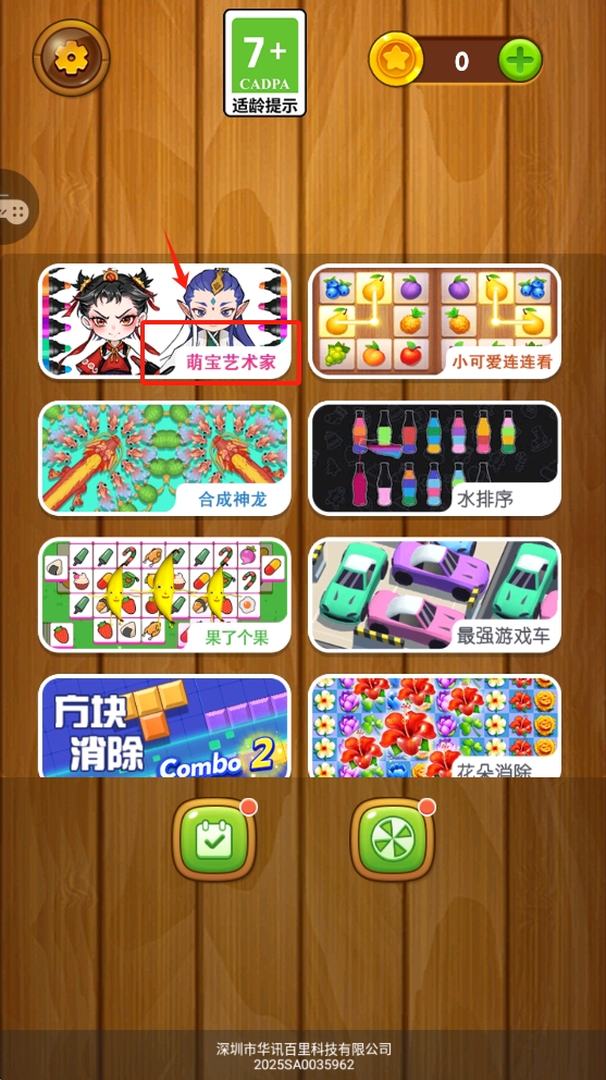 1、在游戏大厅中,点击选择“萌宝艺术家”开始绘画。