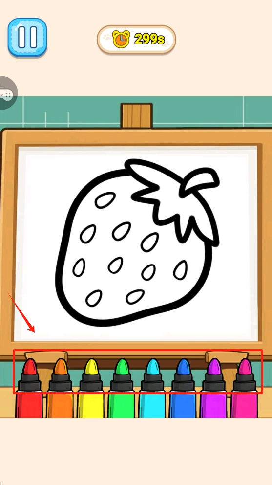 4、在绘画界面,点击下方蜡笔选择颜色,然后为图案上色。