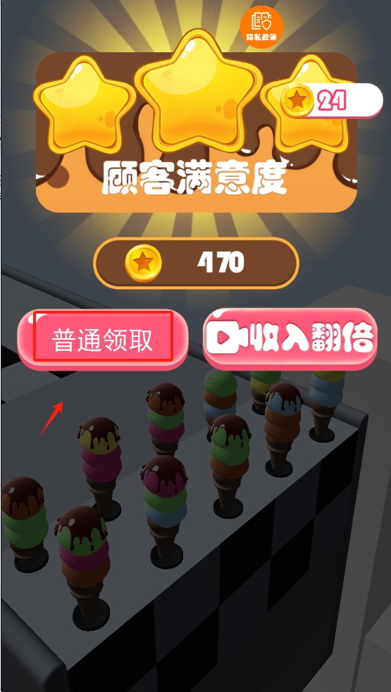 4、顾客评价反馈:成功抵达终点后,顾客会根据成品给出评价,获得好评带来满满的成就感,激励你追求更完美的甜筒。