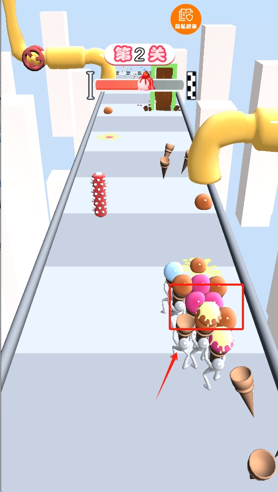 2、通过简单的滑动或点击操作,控制你的甜筒在赛道上稳定奔跑。