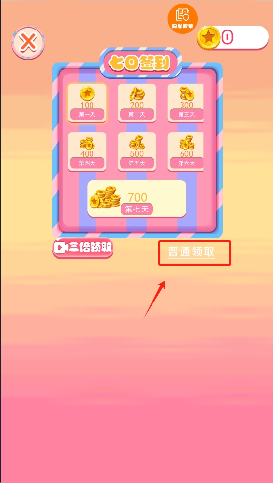 4、点击签到按钮,领取每日奖励,连续签到可获得更多金币和道具。