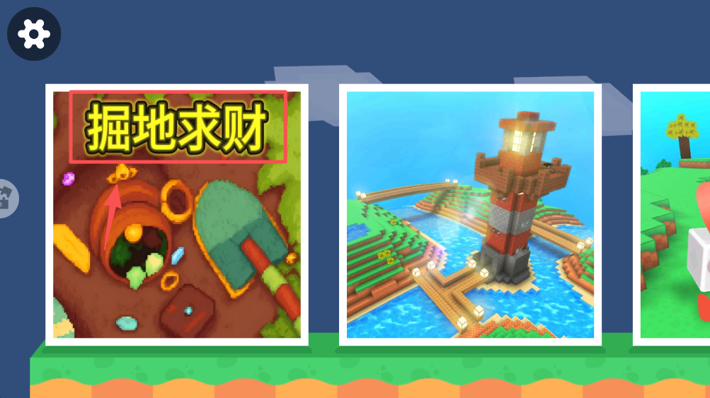 1、点击“掘地求财”按钮,选择游戏模式,开始你的建造冒险之旅。