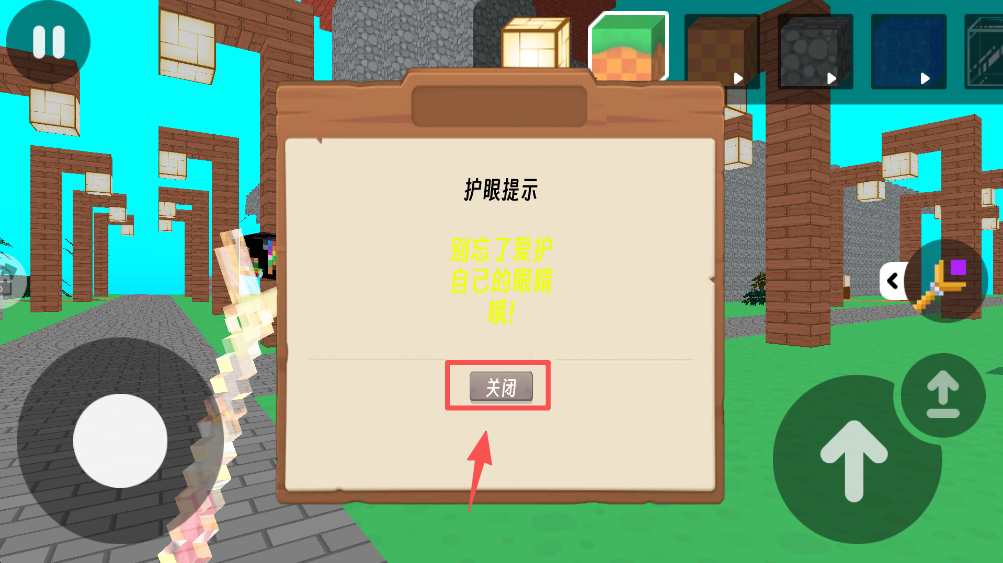 3、点击“关闭”按钮,忽略护眼提示,继续游戏,保持专注。