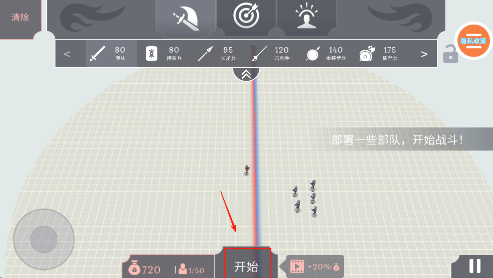 3、点击并拖动部队图标,将它们放置在最佳位置,准备开始战斗。