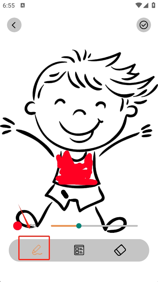 3、使用画笔工具在模板上进行涂鸦,选择颜色并调整画笔大小,完成你的作品。