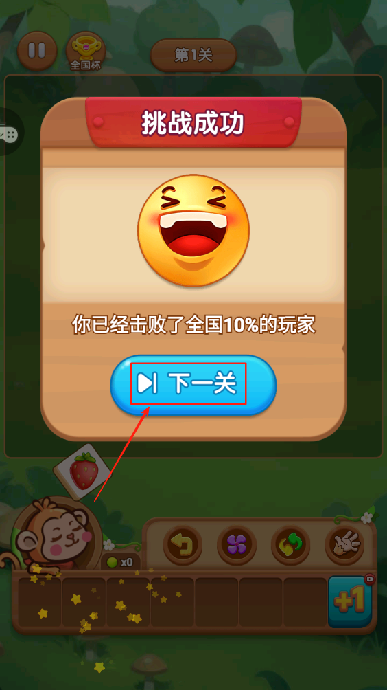 3、完成关卡后,点击“下一关”按钮,继续挑战新的关卡,获取更高分数。