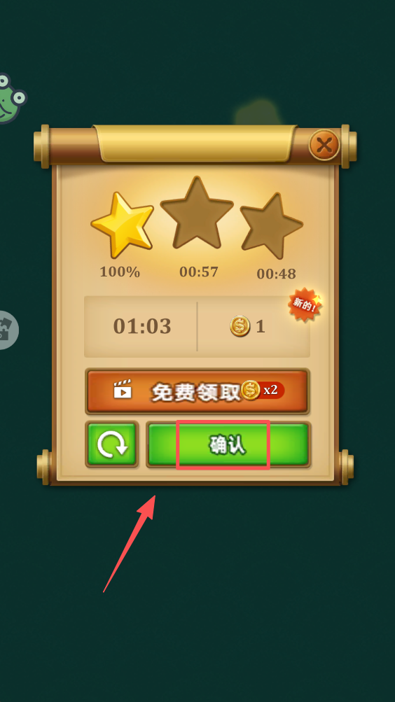 3、完成关卡后,点击“确认”按钮领取奖励,如金币或时间奖励。