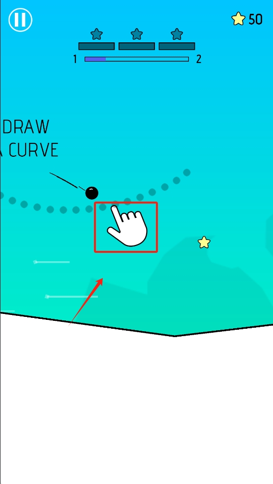 2、在游戏界面,点击屏幕绘制曲线,引导角色前进。