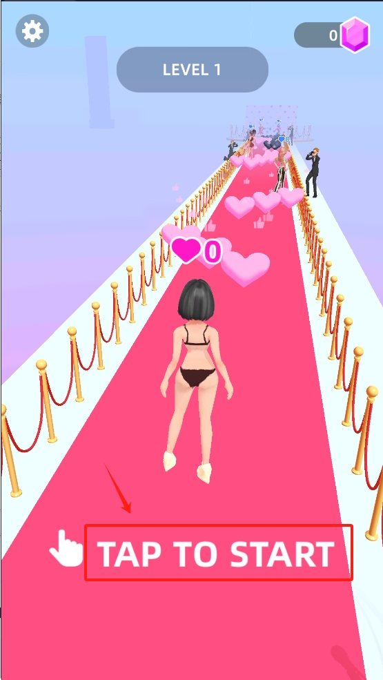 1、点击“TAP TO START”按钮开始游戏。角色会自动前进,你只需收集爱心和避开障碍物。