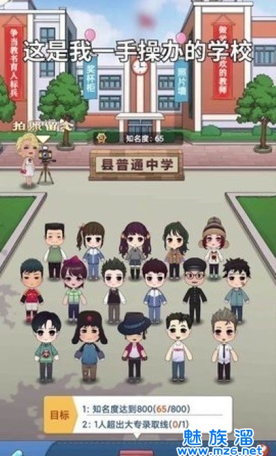 模拟经营重建校园,一款校园经营小游戏。玩家将建造一所个性校园,招收更多个性学生,招聘顶级教师培训,管理建造你的校园,各种运动会,唱歌比赛举办,全方面发展你的学生。