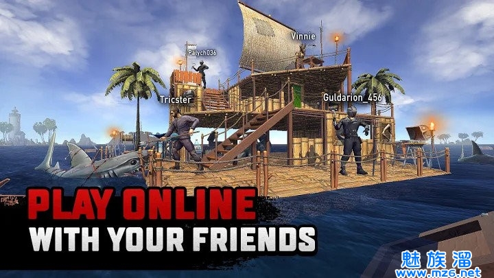 与你的朋友一起在木筏上战斗,或与其他玩家一起玩耍。