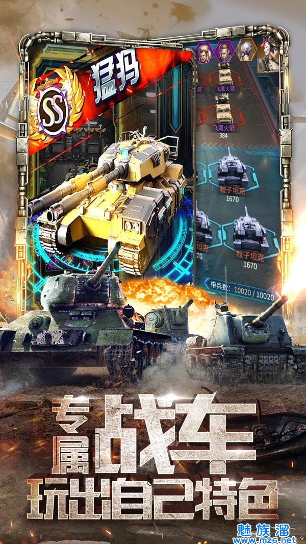 1、有全球超过数百台的现在坦克、武装的直升飞机、反攻坦克歼机炮等武器可供玩家自由选择