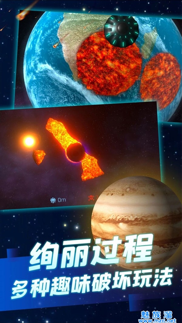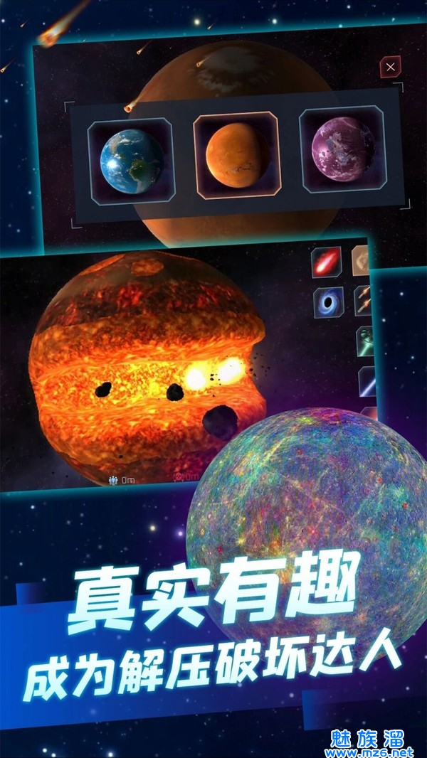 1.真实模拟从外太空角度还原毁灭星球的场景,玩家可以随心所欲的选择你的目标。