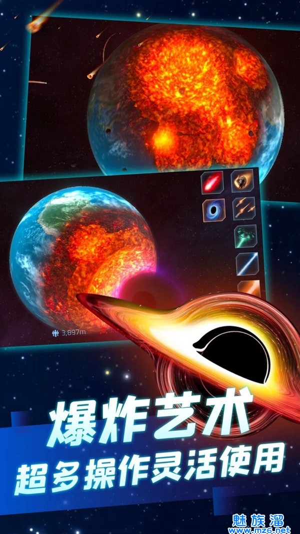 2.升级你的星球,让你更好的享受相应的冲击,在星球爆炸模拟器中完成你后续的毁灭计划。