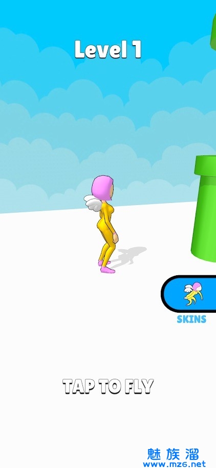 1.点击屏幕开始游戏,游戏开始后,你可以继续在屏幕上点击,这个飞行中的人类会随着你的点击而上升并飞行。