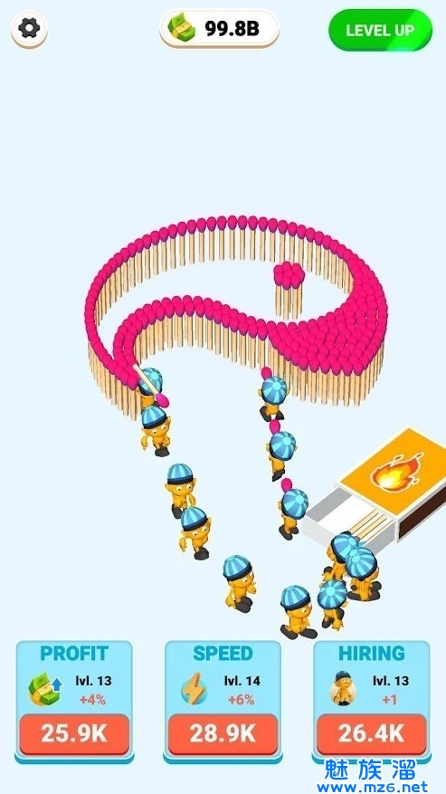 火柴工艺空闲游戏是一款非常好玩的休闲趣味类手机游戏,游戏采用了卡通的画风,玩法轻松趣味十足,在这里玩家可以随意的摆放火柴,将其制作成各种工艺品,甚至还可以搭建房屋,然后你就可以一把火将他们全部烧光,用的火柴越多烧完之后你获得的奖励也就越多,感兴趣的玩家快来下载火柴工艺空闲开始游玩吧!