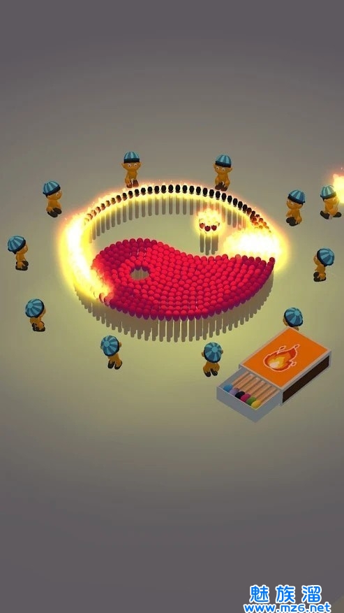 2.游戏操作非常简单,游戏中的小角色会把火柴盒里的所有火柴都拿出来,放在一个特殊的形状上,然后他们在点燃后就能看到一幅非常漂亮的画面。