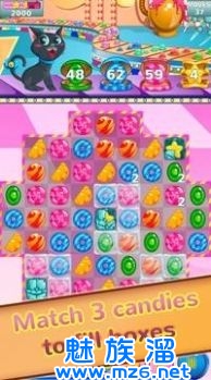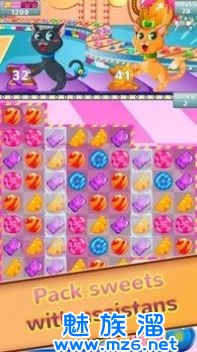 1.玩法很简单,玩家需要把相同的三个糖块排成一排或者一列就能消除,消除的糖块越多获得的得分也越多