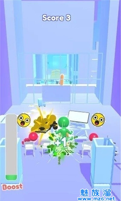 3、游戏中玩家可以控制着这个爱放屁的橡皮人一往直前随意的破坏办公室里的一切顺利抵达终点即可获胜。