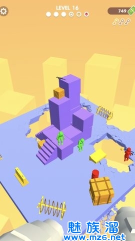 2、展示你的操作和实力快速的通过更多障碍,避开与你不同色彩的迷你橡皮人;