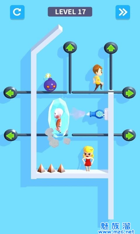 2、在推理和权衡之中决议拉动针头的次第,从恶魔小偷的手中救出你的梦中情人吧!
