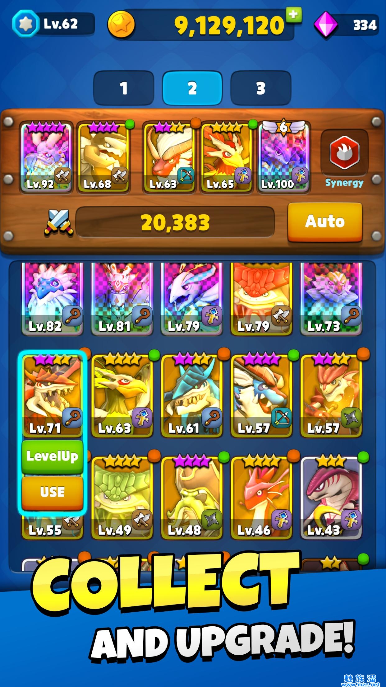 1、超过70条史诗级的巨龙等你来收集和培养,收集更多的金币来养成你的角色;