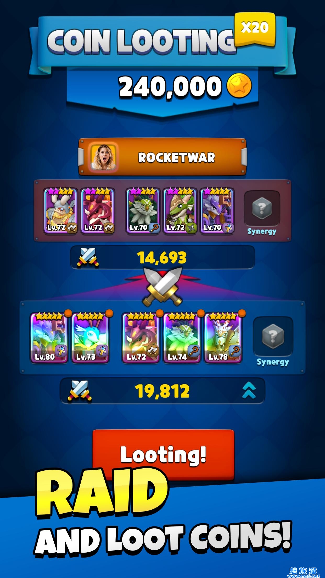 3、你能够攻击其他的玩家在战胜他们之后就可以掠夺他们的金币了。