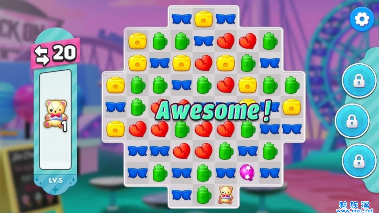 4、玩法比较的休闲,通关不同的三消挑战,赢得更多的奖励,收集更多的金币;