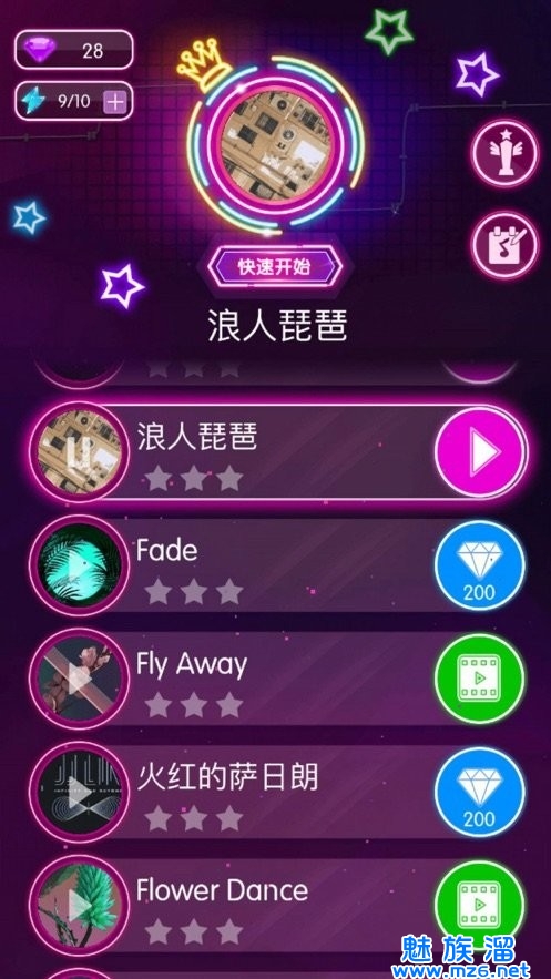 1.刺激的音乐闯关游戏,提供惊艳的霓虹级别和2021流行歌曲;