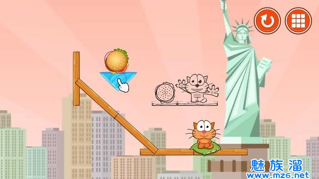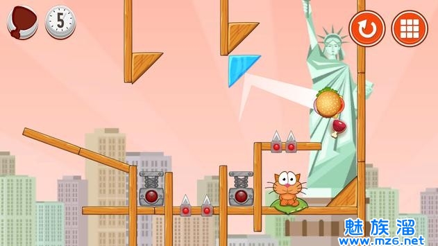 3、帮助饥饿的猫吃更多的食物,而不是让它饿死,有很多有趣的关卡,很多特殊物品供玩家使用。