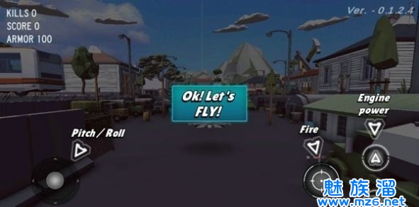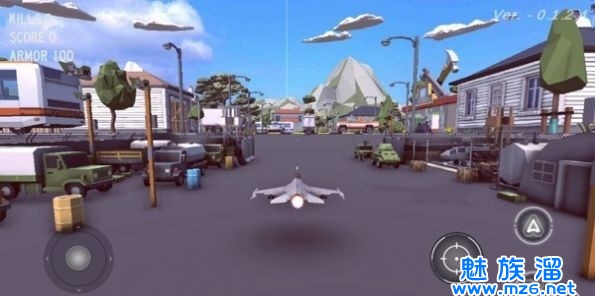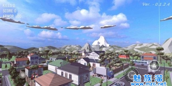 1、遥控飞机飞行空战中玩家要操控自己的飞机在空中自由飞行,注意前方的屋顶还有其他的高空建筑,撞击等于毁灭。