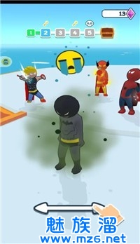 1、你需要通过不断的前进来收集不同的装备来变换不同的超级英雄,小心途中其他坏装备;