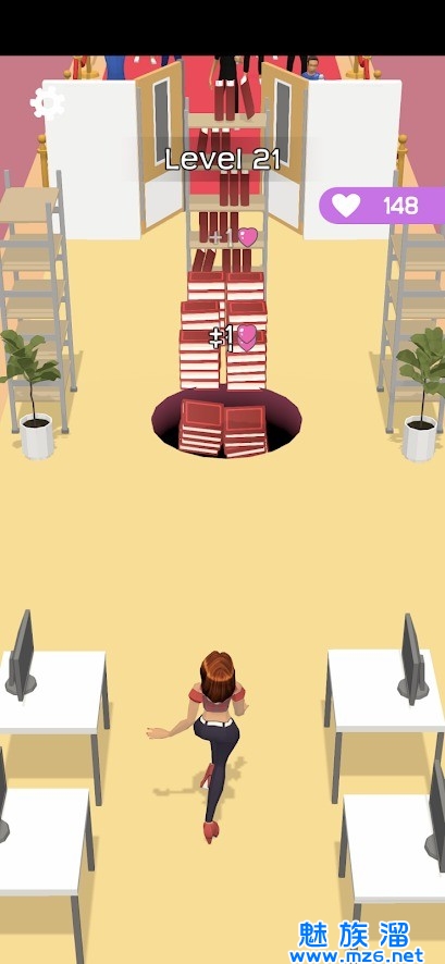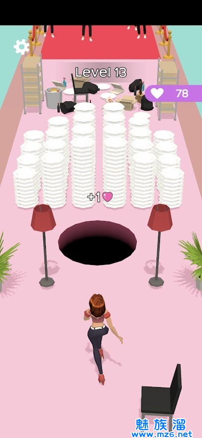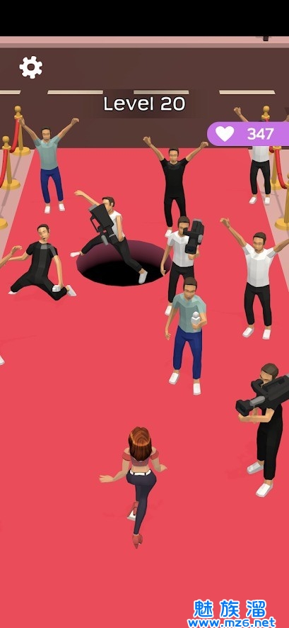 2、滑动屏幕控制黑洞不断吸收更多不同的物品,每吸走一个就会有一个爱心,女孩如果被绊倒将会消耗爱心哦。