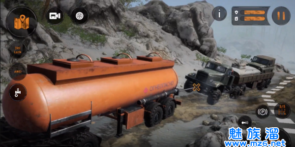 3、方向盘、刹车、油门、灯光等按钮模拟真实的卡车功能,玩家可以随意使用。
