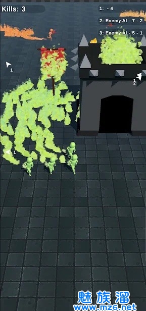 大家可以利用脚下的火苗来干掉敌人,也可以不断的收集散落在地下的火人,组成更强大的队伍;