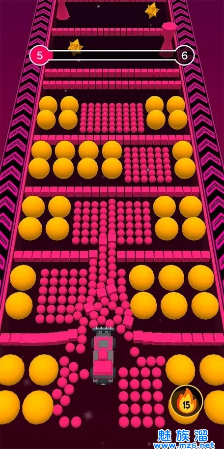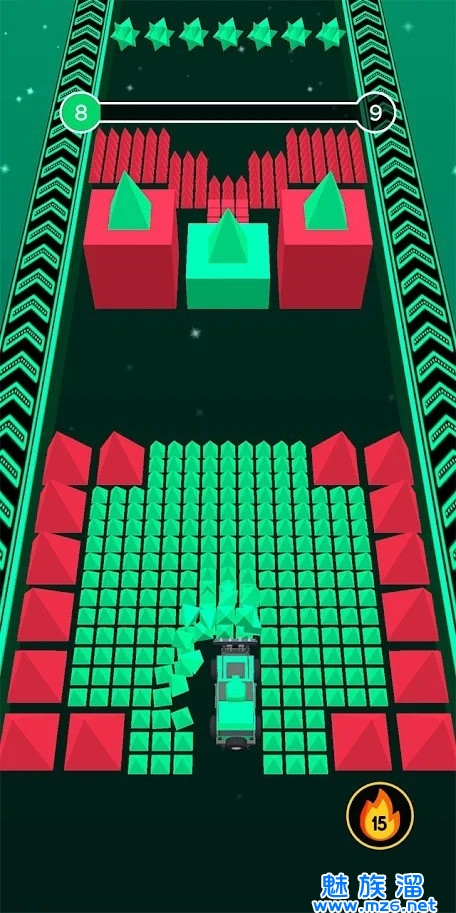 选择颜色和车相同的障碍撞击,然后通过,到达终点。