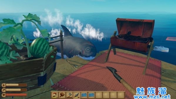 4、愤怒和饥饿的鲨鱼总是靠近你的木筏,不过你也骨气勇气来朝攻击你的鲨鱼发动进攻;