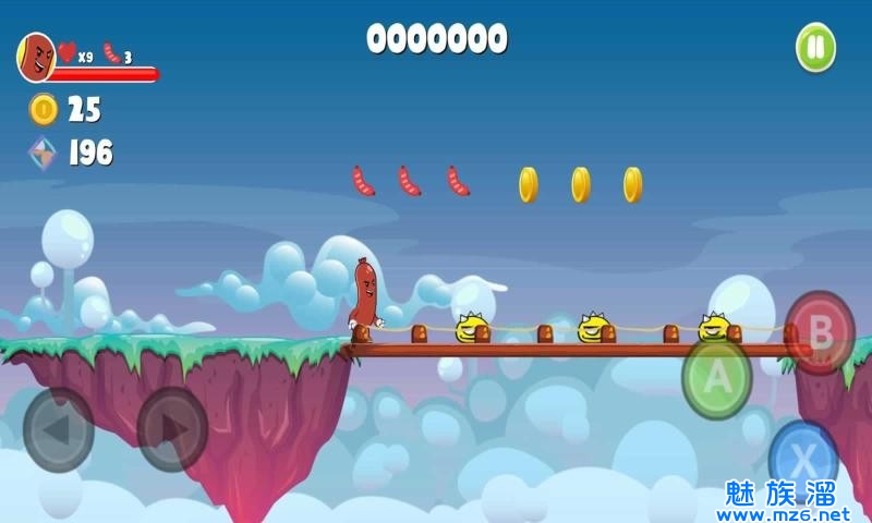 1、操作非常的简单,玩家只需要点击屏幕就可以控制自己的香肠角色去进行跳跃;